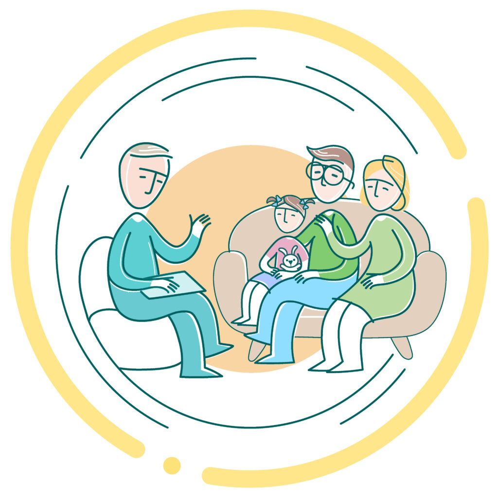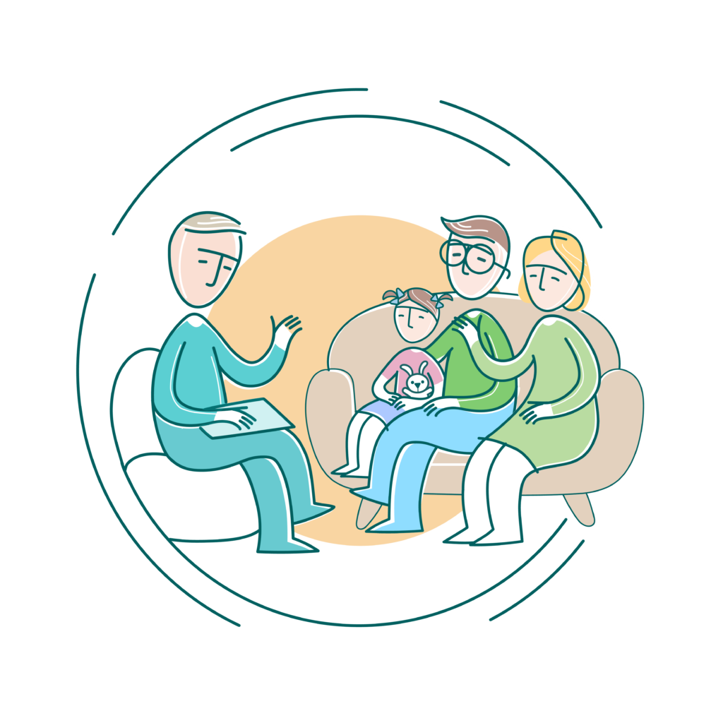 У випадку, якщо звертається сім'я із запитом щодо психологічних проблем чи порушень розвитку у дітей, то інтерв'ю в залежності від віку дитини може відбуватися або повністю з батьками та дитиною, або ж частину часу може бути окрема розмова з батьками, частину з дитиною/підлітком і тоді усі разом. Від батьків ми насамперед хочемо отримати інформацію про наявні скарги та проблеми. Ми уточнюємо важливу інформацію необхідну для діагностики та розуміння проблем, а також хочемо довідатися більше про сім'ю дитини, її соціальне середовище, навчання, історію розвитку і т.д. Ми також, якщо це є можливо з огляду на вік та розвиток дитини, говоримо напряму з дитиною про наявні проблеми та їх контекст, можемо теж використовувати в ході інтерв'ю діагностичні методики з використанням малюнків, гри, історій та ін.